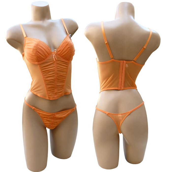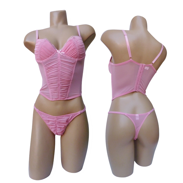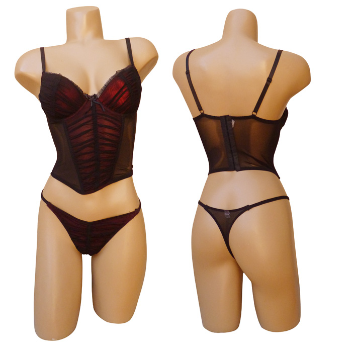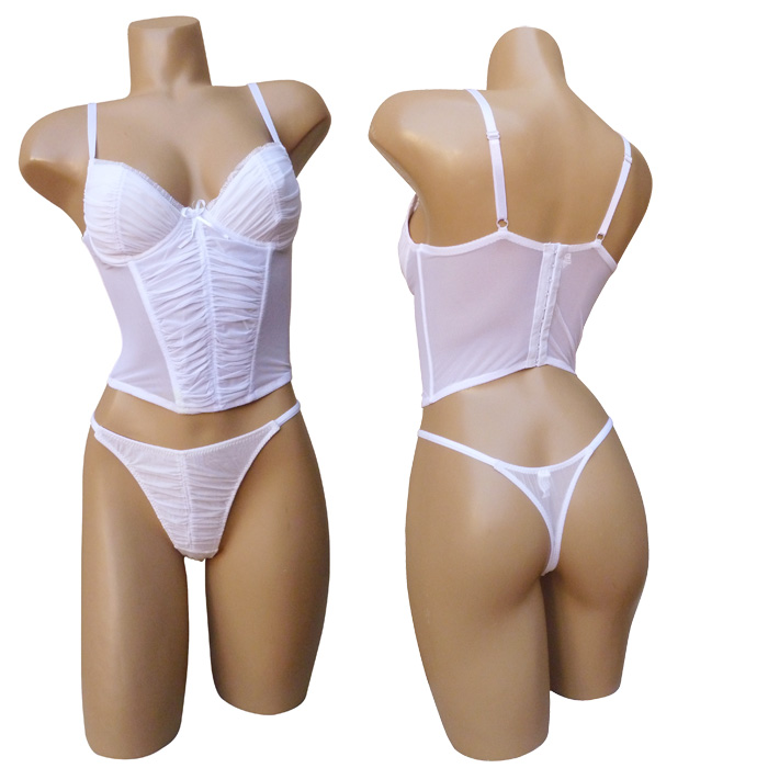 Ensemble Bustier + Tanga - Voile Stretch - Bonnets Rembourrés tissu plissé--bande plissée à l'avant- Agrafages Dos.