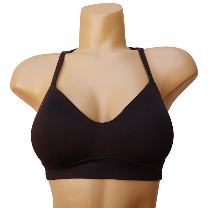 Brassière sport - Bande stretch sous poitrine. Bonnets préformés, rembourré sans armatures. Brides montantes sur épaules, réglables. Dos nageur, micro trou trou, tissu respirant. 2 Tailles.
