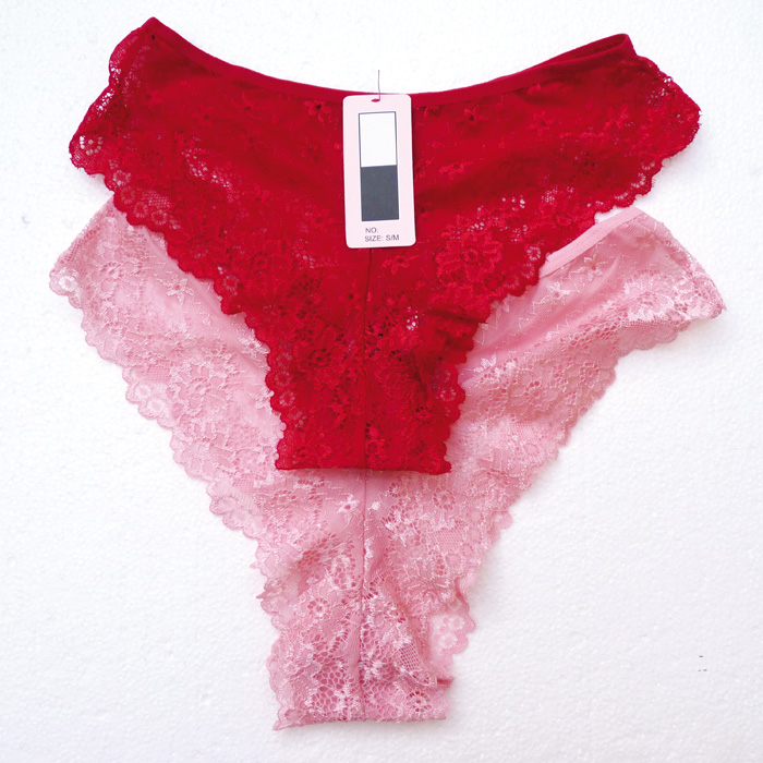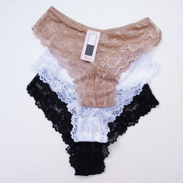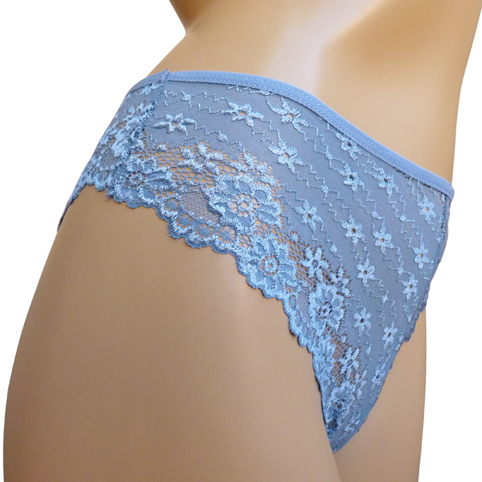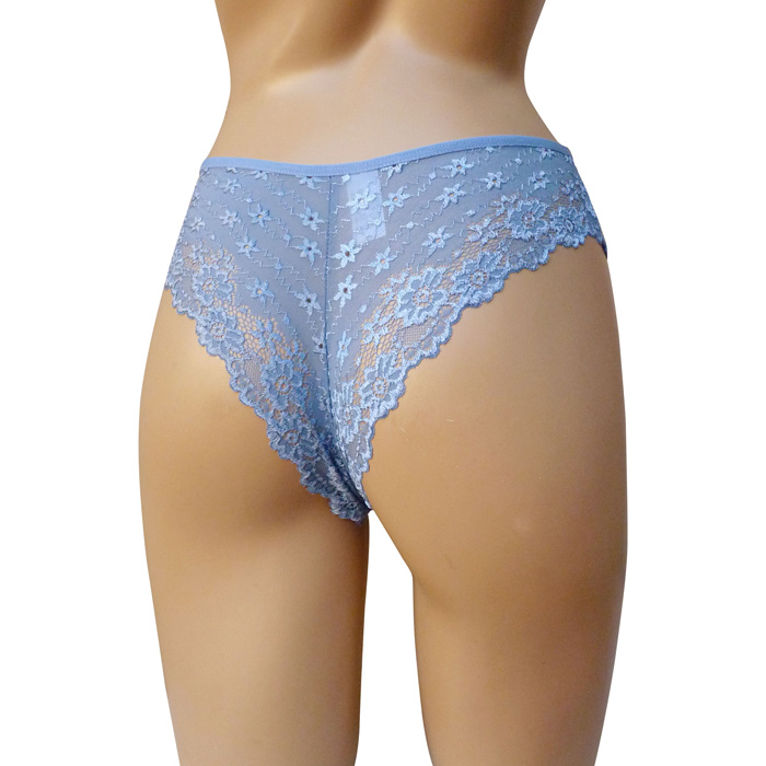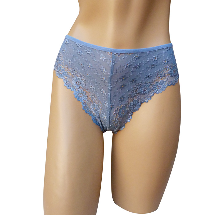 Slip brésilien, broderie "fleurs" sur maille filet stretch - Taille élastiquée. 2 tailles : S/M et L/XL.