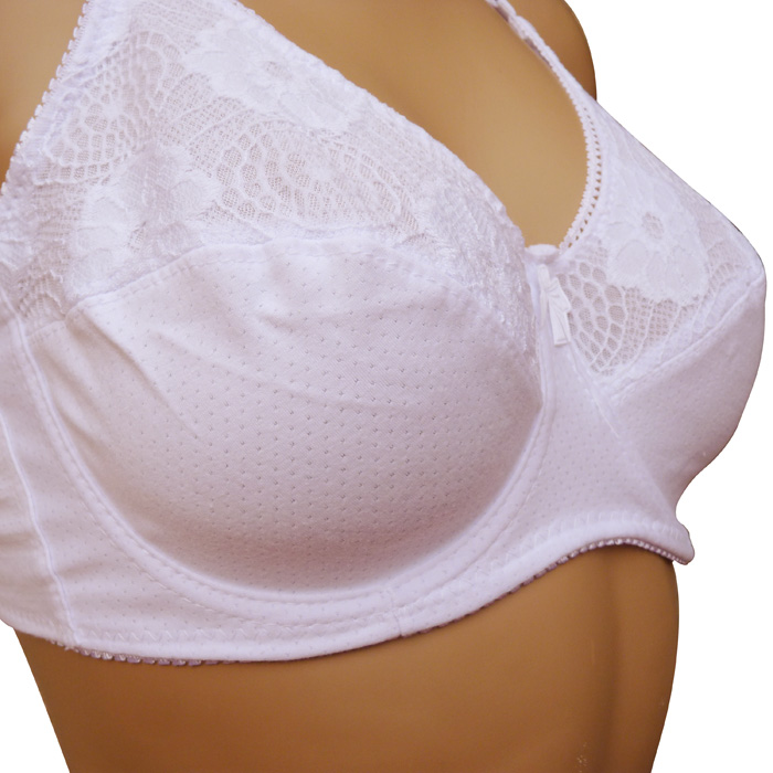 Soutien gorge grande taille, 40% coton Bonnet C, . Soutien gorge avec armatures et non rembourré. Maille résille stretch sur la partie supérieure du bonnet, uni sur la partie inférieure. Brides réglables. Ouverture dos, 2 agrafes triple positions d'accroches. 6 Tailles.
