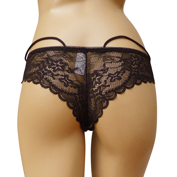 Slip brésilien, broderie "fleurs" sur maille filet stretch - Brides de chaque côté sur les hanches. Taille élastiquée. 2 tailles : S/M et L/XL.