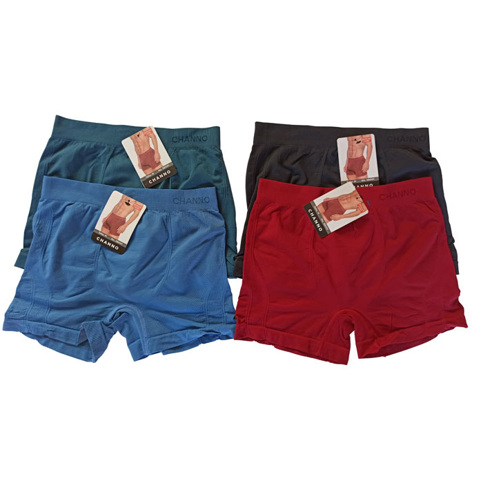 Boxer homme uni, lycra. Boxer agréable au toucher. Tissu léger. Ceinture élastiquée avec inscription "Channo" à l'avant . 4 couleurs et 3 tailles dans le paquet : M-L-XL