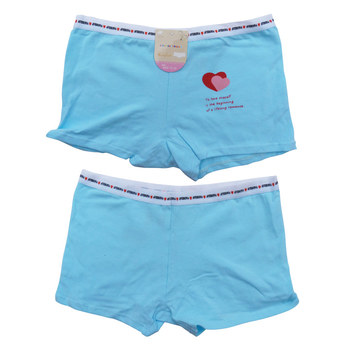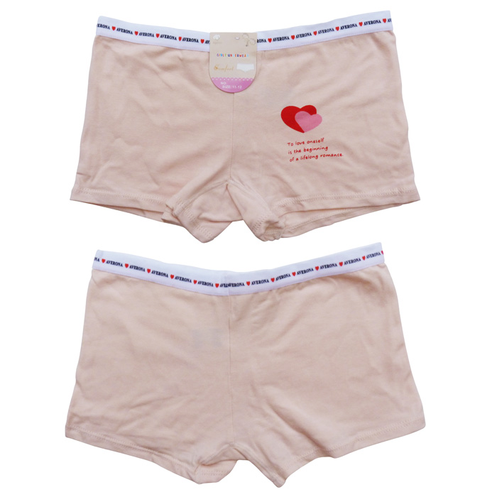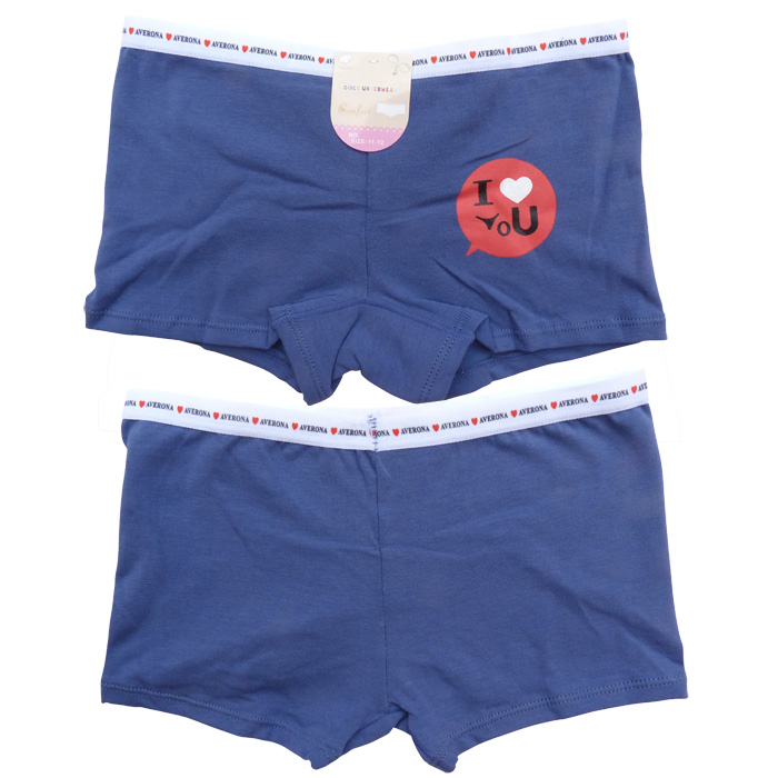 Boxer fille unie, coton majoritaire boxer avec motif "cœurs" et inscription "I LOVE YOU" sur un des côtés du boxer dans plusieurs coloris. Taille élastiquée avec inscription "averona" et "cœurs" 4 tailles : 2-4 ans/5-7 ans/8-10 ans/11-12 ans.
