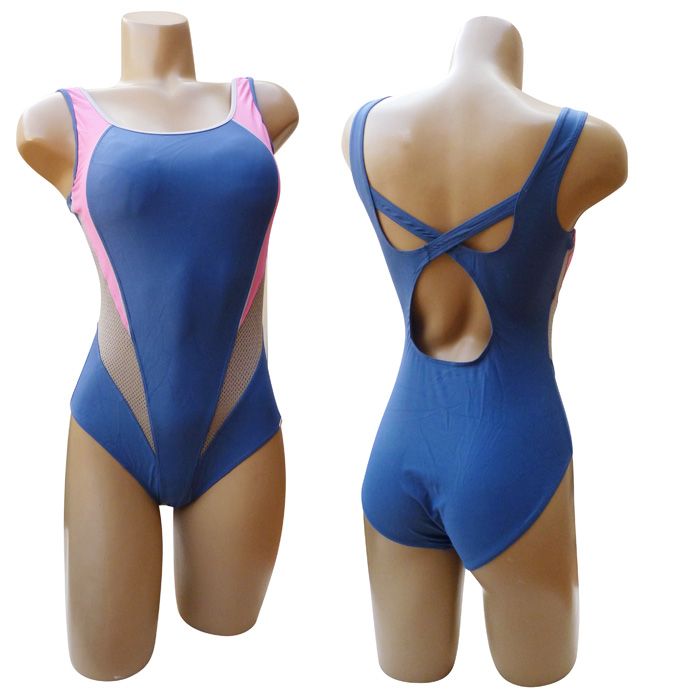 Maillot de bain femme 1 pièce. Encolure arrondie, soutien gorge forme bandeau, dos nageur croisé. Mousses intégrées et amovibles. Motif géométrique sur les côté, unie à l'arrière. Bretelles larges. 4 tailles proposées.
