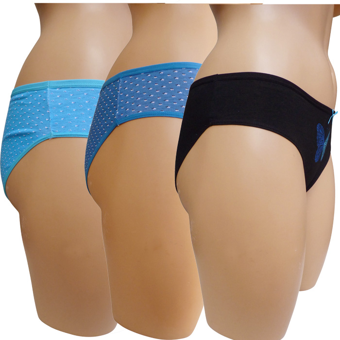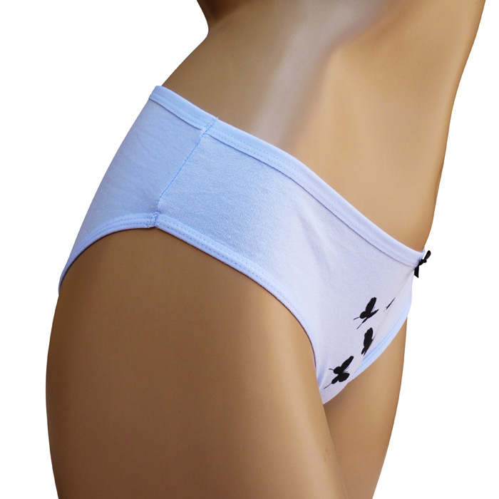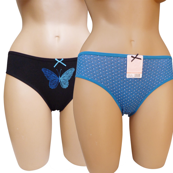 Culotte grande taille, coton majoritaire . Imprimé ou motif "papillons" sur fond uni. 3 tailles indiquées sur étiquette.