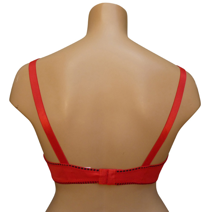 Soutien gorge grande taille avec armatures - Soutien gorge non rembourré, bonnet E. Soutien gorge uni, liseré contrasté de petits carreaux noir sur le pourtour du soutien gorge. Nœud satiné entre-bonnet. Brides réglables. Agrafes dans le dos. 6 tailles : 100E au 125E.