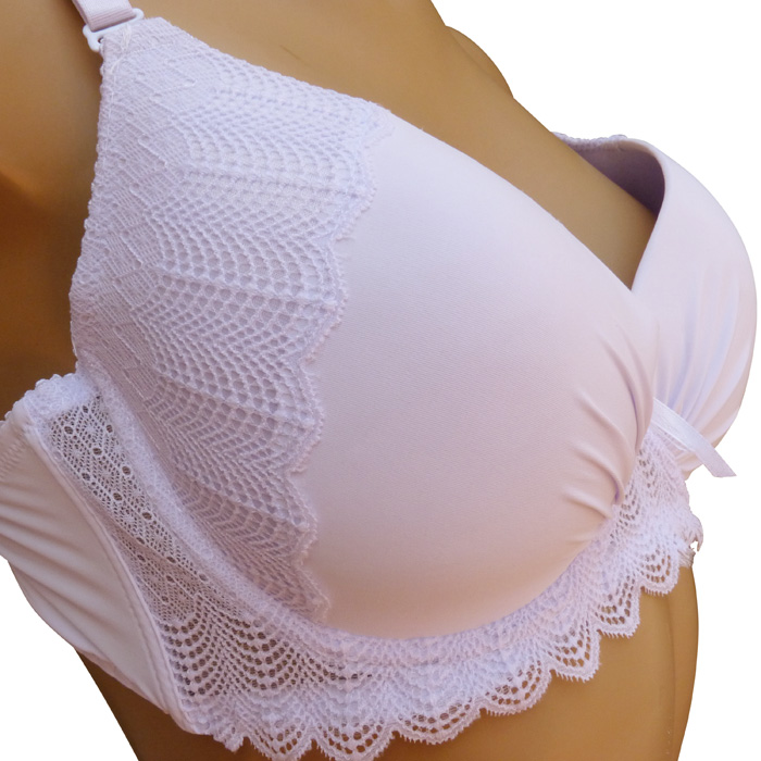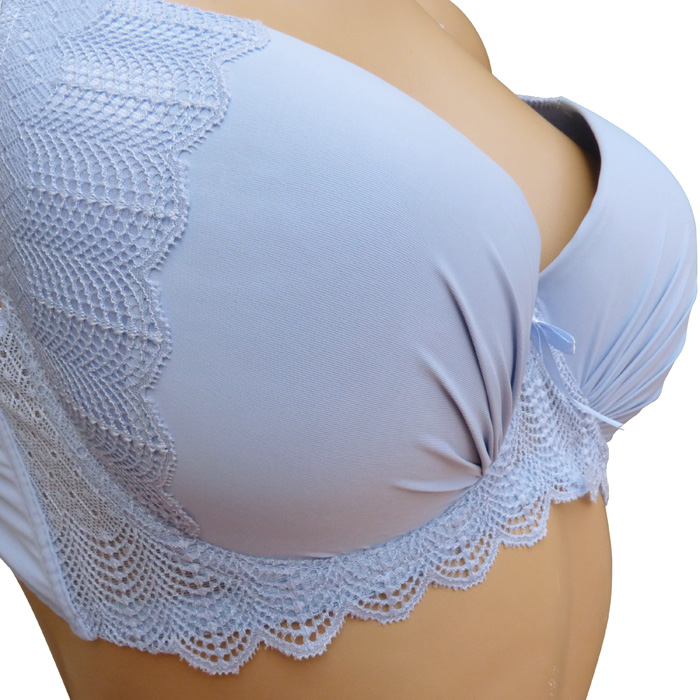 Soutien gorge avec armatures, coques souples avec dentelle ton sur ton sur les côtés des bonnets. Soutien-gorge entièrement uni. Bretelles réglables et amovibles. Bonnet C. Nœud satin entre-bonnet. Fermeture dos 2 agrafes agrafes et 3 positions. 4 tailles. 90C à 105C.