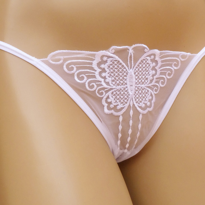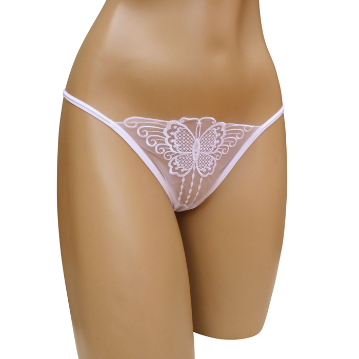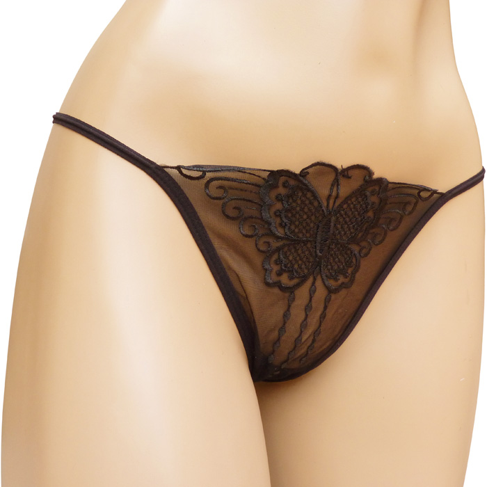 String sexy, fines bride sur les côtés. "papillon" brodé sur maille filet stretch sur le devant. Taille unique.