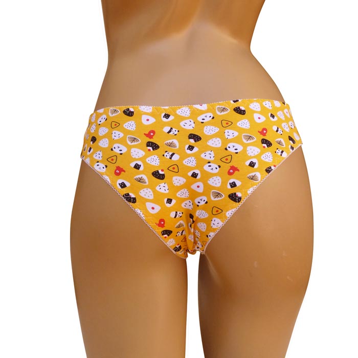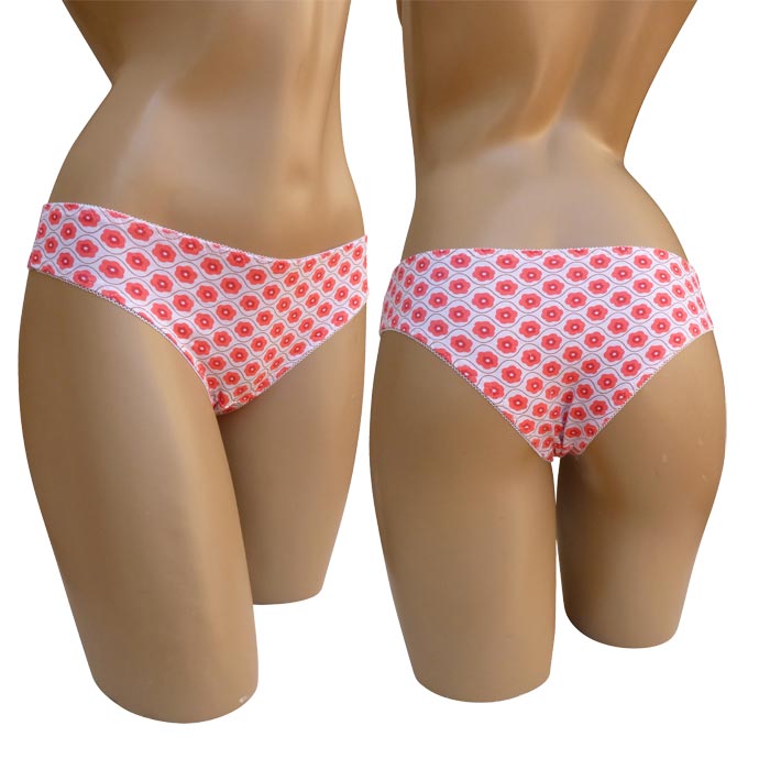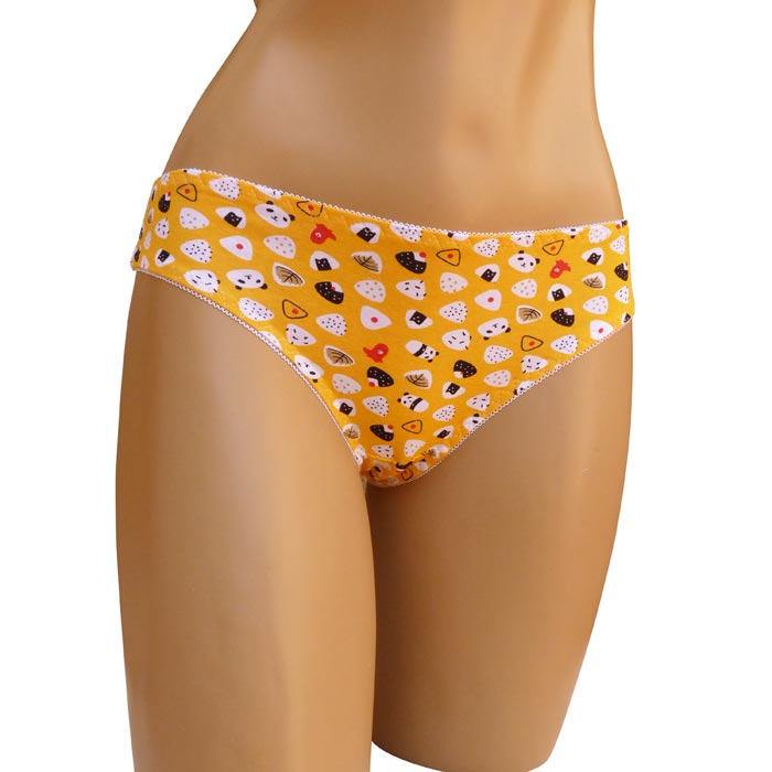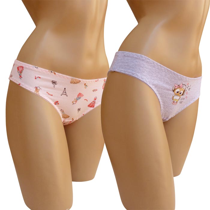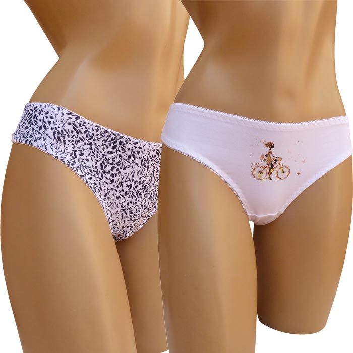 Slip femme, coton majoritaire. Différents Imprimés, 6 coloris différents dans le paquet. Taille élastiquée. Fond doublé. 2 Tailles.