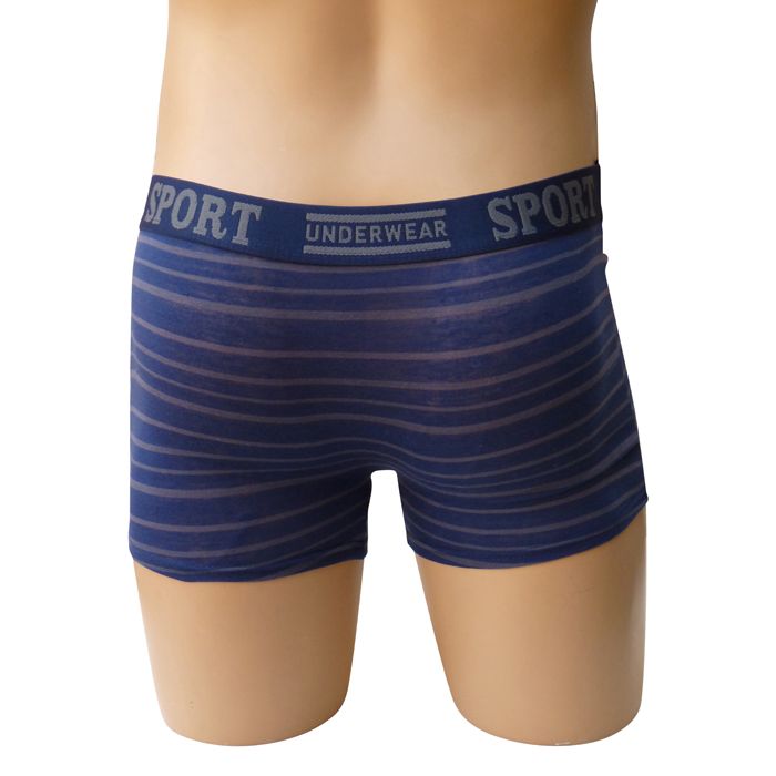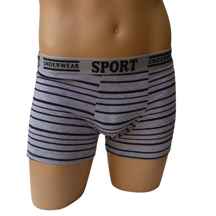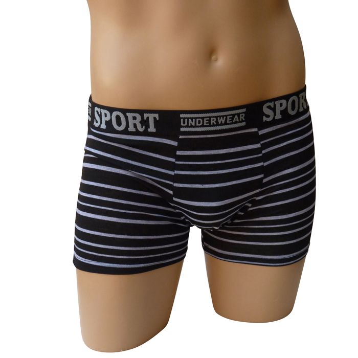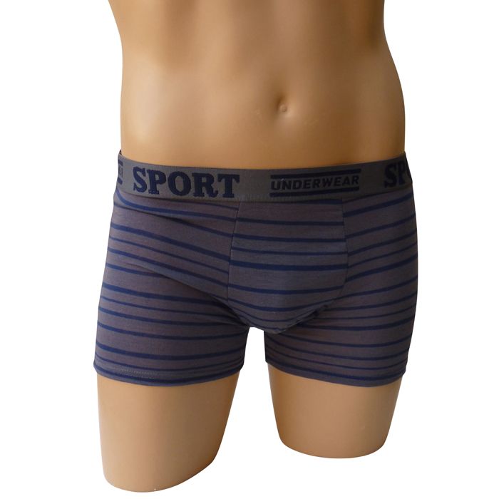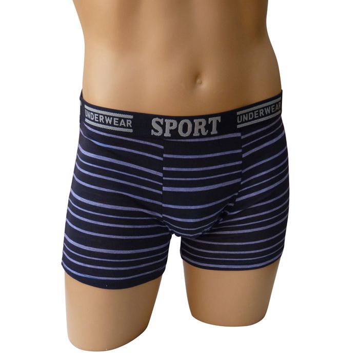 Boxer homme coton majoritaire de couleur unie. Rayures contrastées horizontales. Large ceinture élastique plate "gomme" avec inscription "SPORT Underwear". 5 tailles