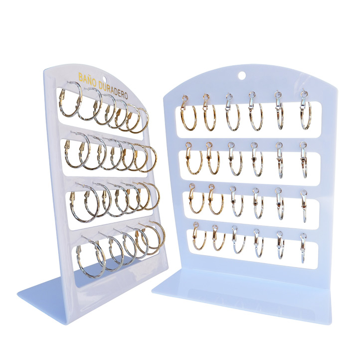 Lot de 12 paires de boucles d oreilles "créoles" avec son présentoir. Coloris argenté et or. Voir photos.