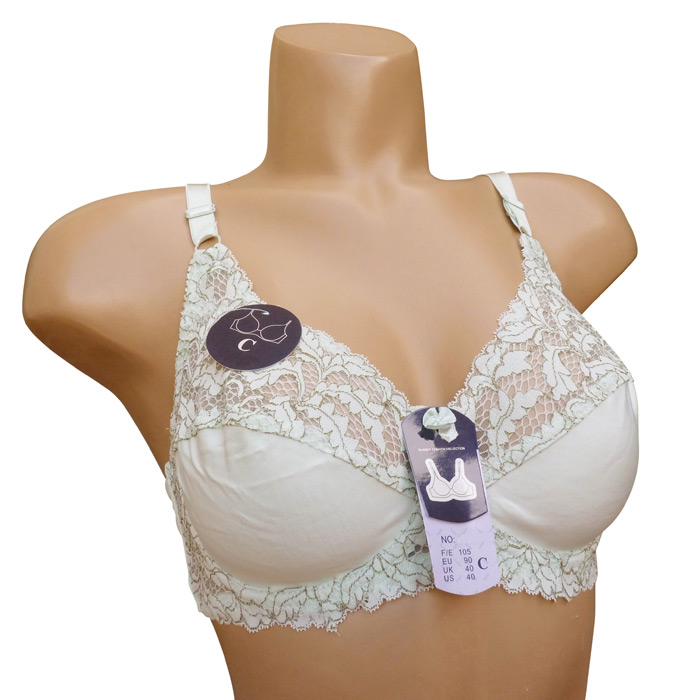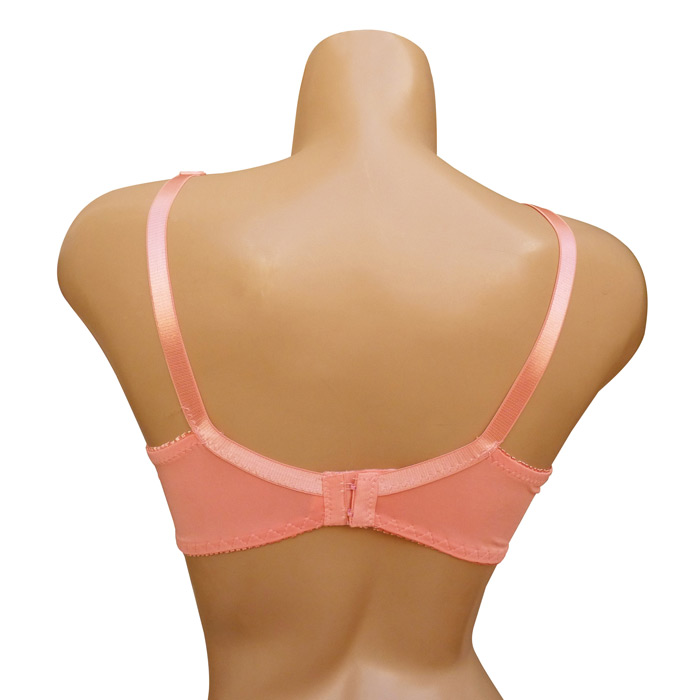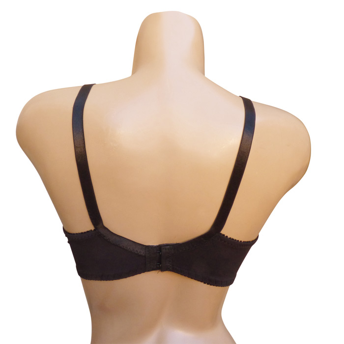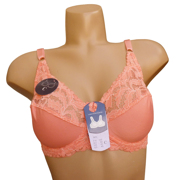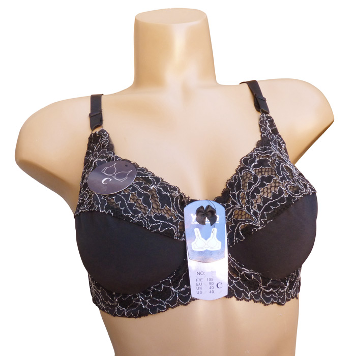 Soutien gorge grande taille, Bonnet C non rembourrés avec armatures. Dentelle sur maille résille stretch avec fin filet ajouré sur la partie supérieure du bonnet. Partie inférieure pleine. Dentelé sur la partie basse du bonnet à l'avant. Brides réglables, non amovibles. Fermeture dos 2 agrafes et 3 positions d'accroches. 6 tailles : de 90C à 115C.