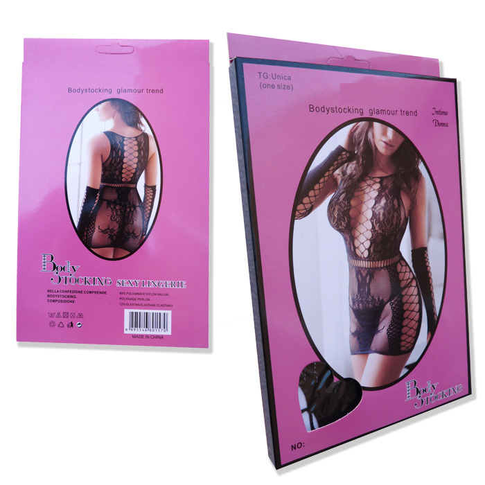 Lingerie hyper sexy voir photos, maille filet stretch. Livré avec gants longueur coude, mais sans le string. Extensible. Taille unique.