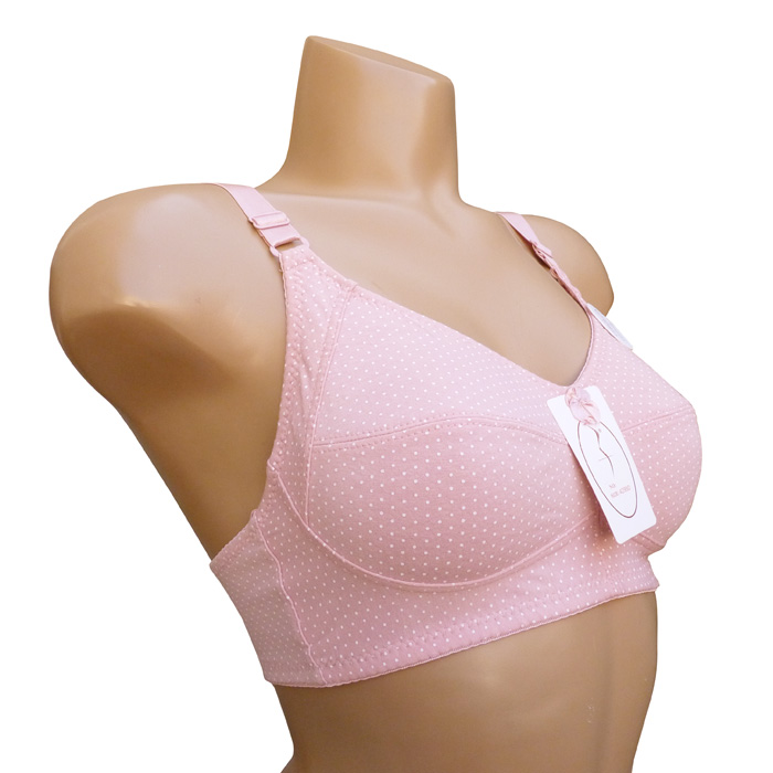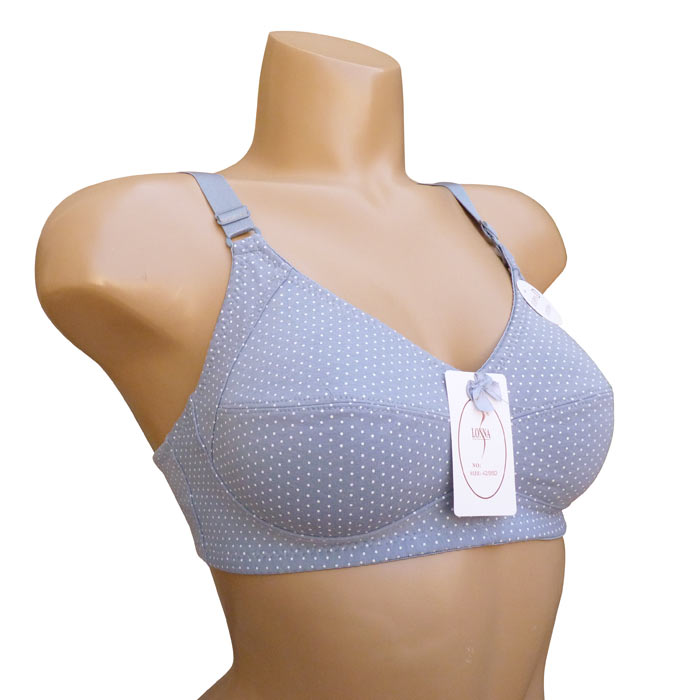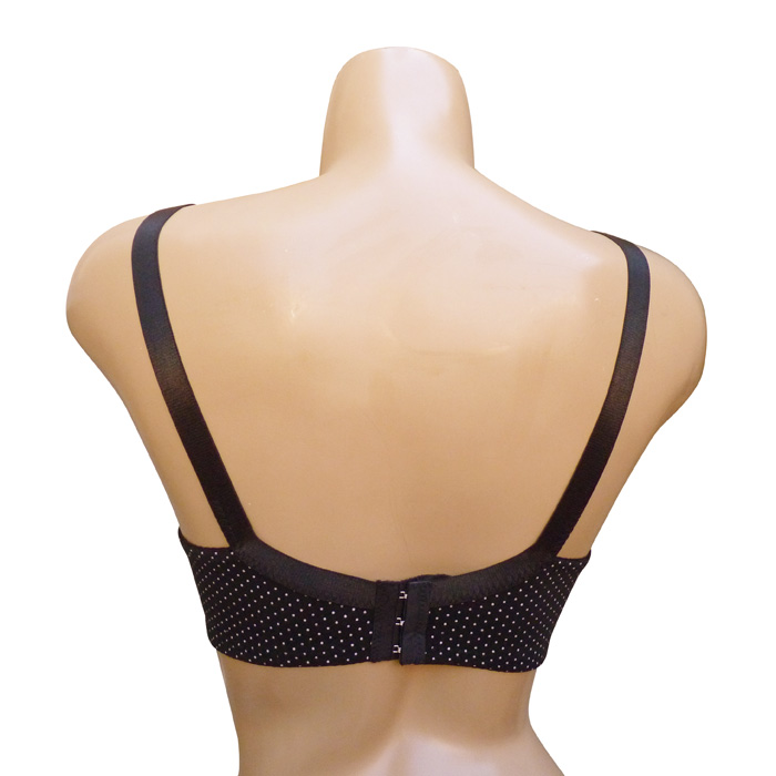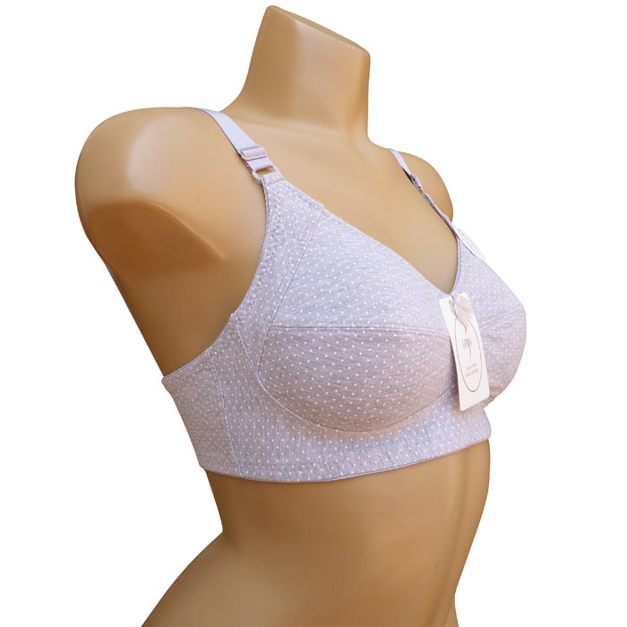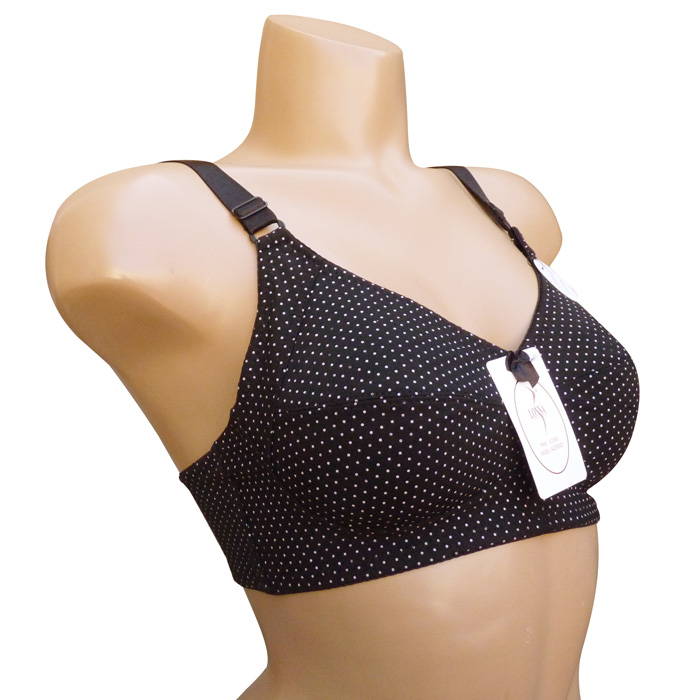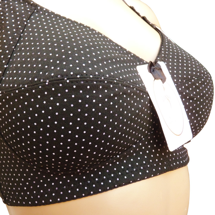 Soutien gorge grande taille, Bonnet D, coton majoritaire. Soutien gorge sans armatures et non rembourré. Soutien gorge uni avec motif "pois". Brides réglables. Ouverture dos, 3 agrafes triple positions d'accroches. 6 Tailles : 95D à 120D.