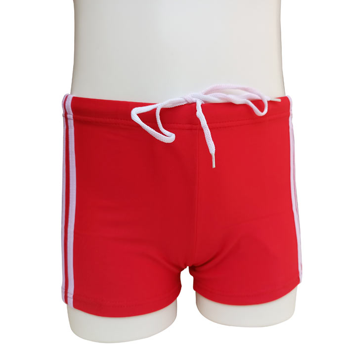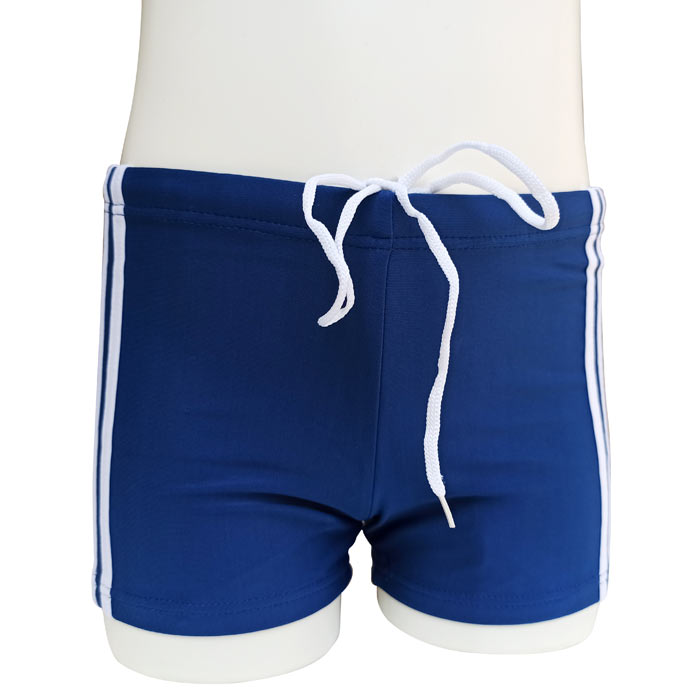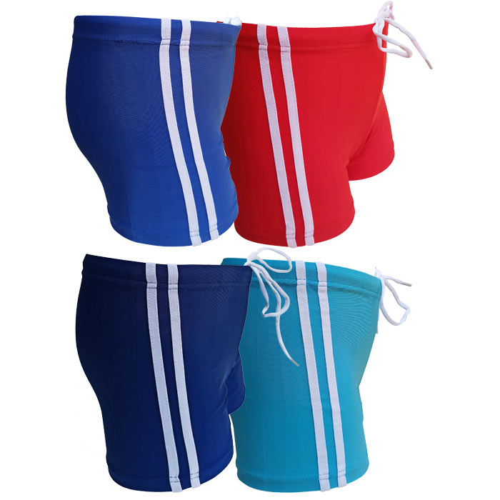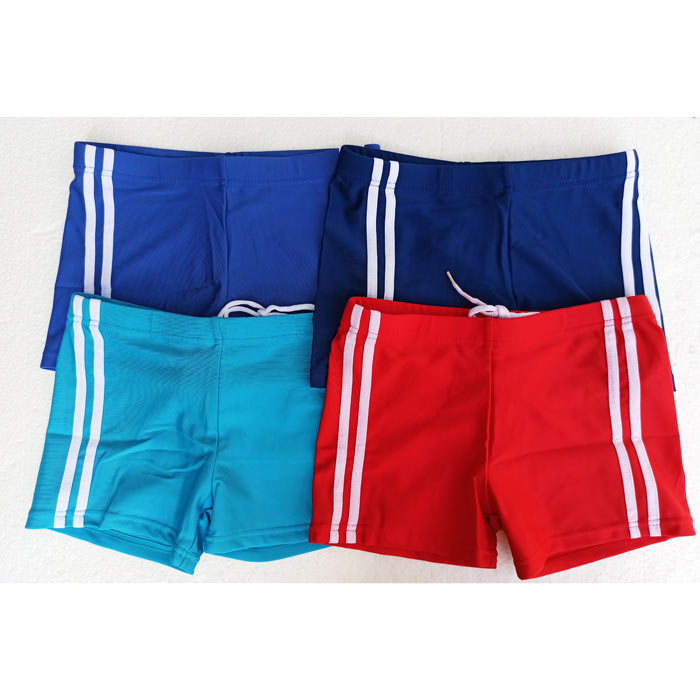 Boxer de bain garçon, doublé d'un fin filet intérieur à l'avant, taille élastiquée avec lacet de resserrage. Boxer de bain avec bandes contrastées sur les côtés. 5 tailles : 7/8 ans - 9/10 ans - 11/12 ans - 13/14 ans - 15/16 ans. 4 couleurs différentes.