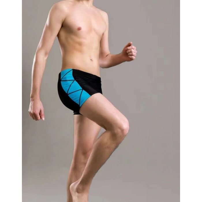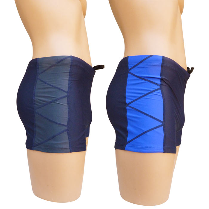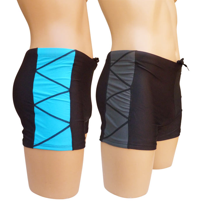Boxer de bain homme, entièrement doublé. Lacet de resserrage à la taille. Boxer avec bandes colorées sur les côtés. 5 tailles de 36/38 à 44/46.