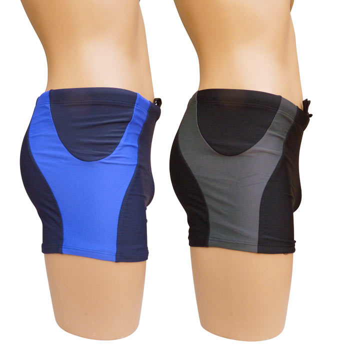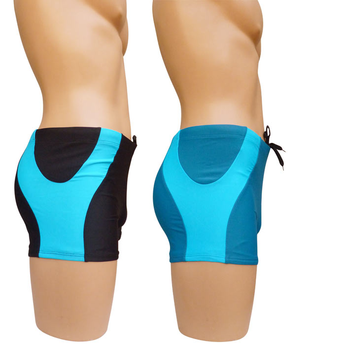 Boxer de bain homme, entièrement doublé. Lacet de resserrage à la taille. Boxer avec bande colorés sur les côtés. 5 tailles de 36/38 à 44/46.