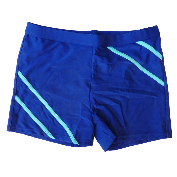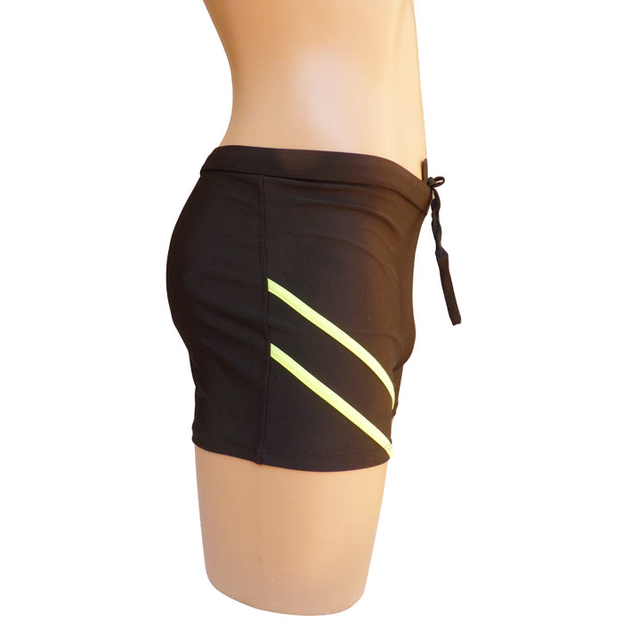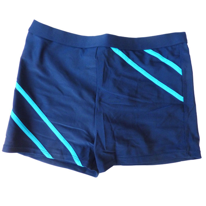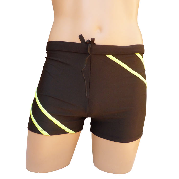 Boxer de bain homme, doublé d'un fin filet intérieur (en forme de slip). Lacet de resserrage à la taille. 2 bandes fines liserés diagonales sur le devant et fini sur les côtés du boxer. 3 tailles : 36/38 - 40/42 - 42/44 : S-M-L-XL