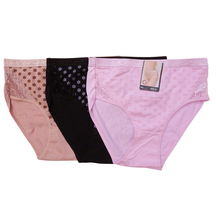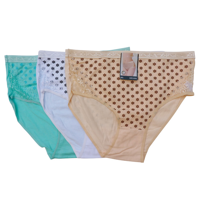 Culotte grande taille. Coton majoritaire. Motif "fleurs" sur le devant ,uni à l'arrière. Dentelle sur maille résille stretch sur les côtés. Élastiquée à la taille. Taille haute. 4 tailles indiquées sur étiquette.