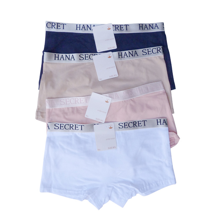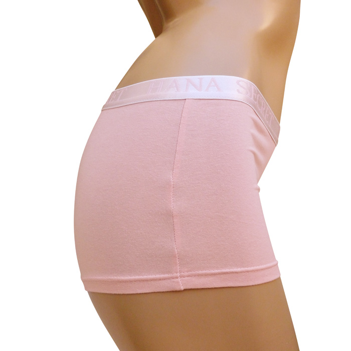 Boxer femme 95% de coton. Boxer entièrement uni devant et derrière. Large bande élastiquée avec inscription logo. 2 tailles : S/M et L/XL.