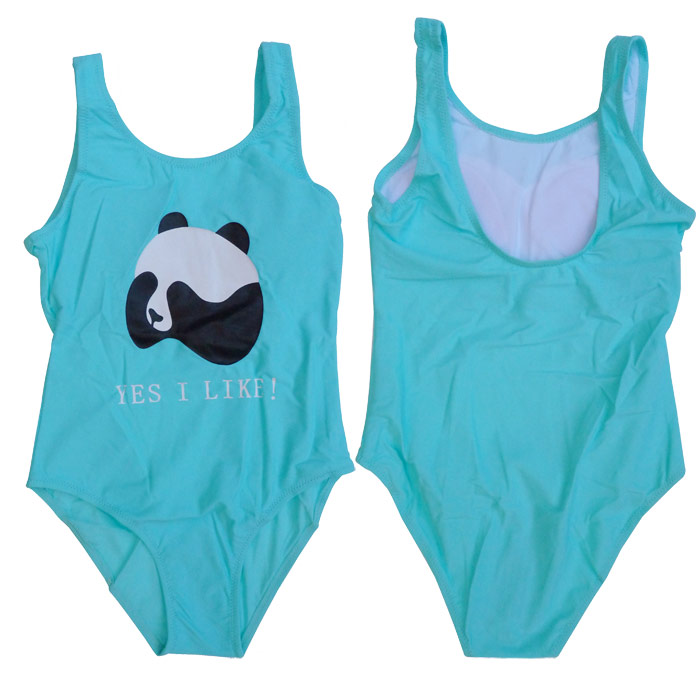 Maillot de bain fille uni, 1 pièce. Maillot doublé sur le devant. Motif "Panda" avec inscription "YES I LIKE ! " sur le devant du maillot. Soutien-gorge avec mousses amovibles. 4 tailles : de 8/10 ans à 14/16 ans.