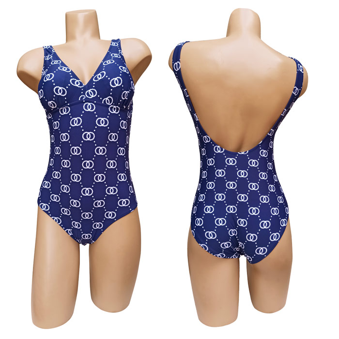 Maillot de bain femme 1 pièce, doublé entièrement. Soutien gorge forme triangle, mousses intégrées et amovibles. Imprimé graphique sur l'ensemble du maillot. 2 couleurs proposées dans le paquet. Bretelles épaules. 4 tailles: du 36/38 au 42/44.