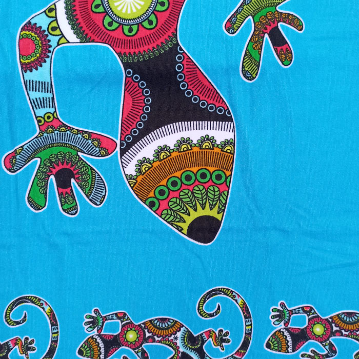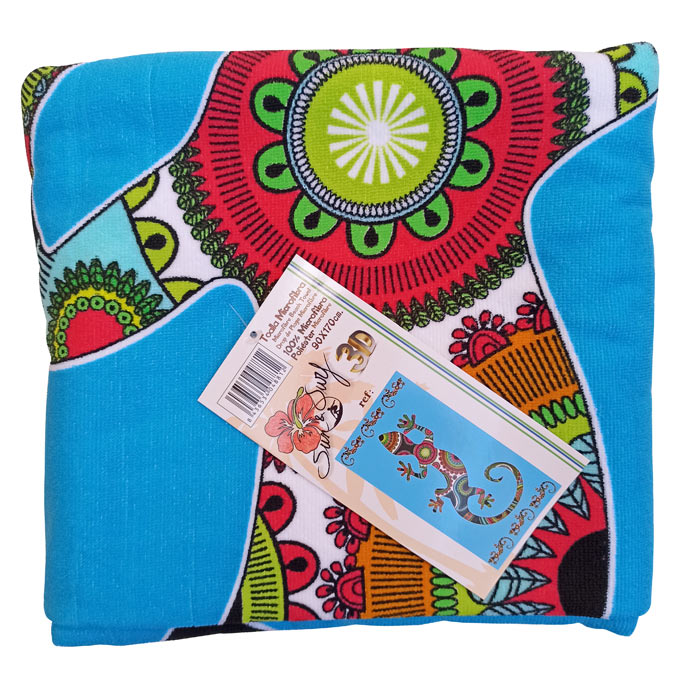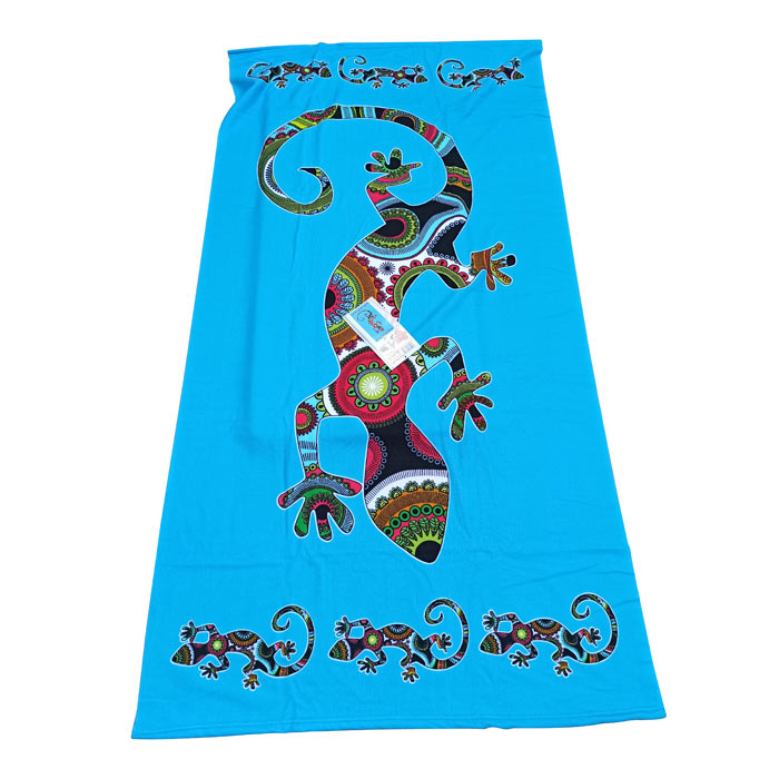 Grande serviette de plage en microfibre. Motif Lézard sur fond turquoise. Dimension : 90x170.