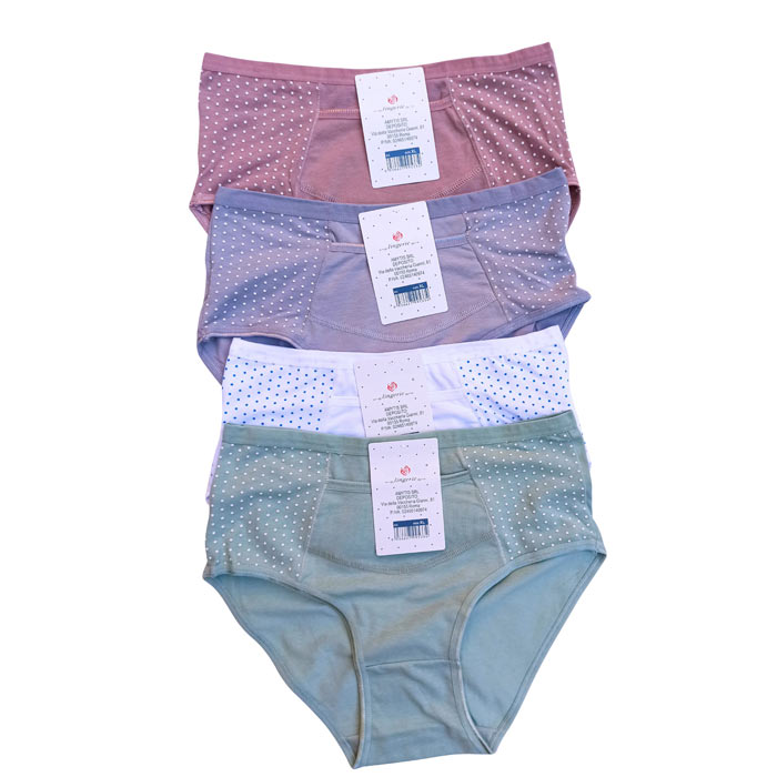 Culotte grande taille coton majoritaire . Imprimé "pois" sur les côtés, petite poche sur le devant. Culotte unie à l'arrière 4 tailles : XL-2XL-3XL-4XL.