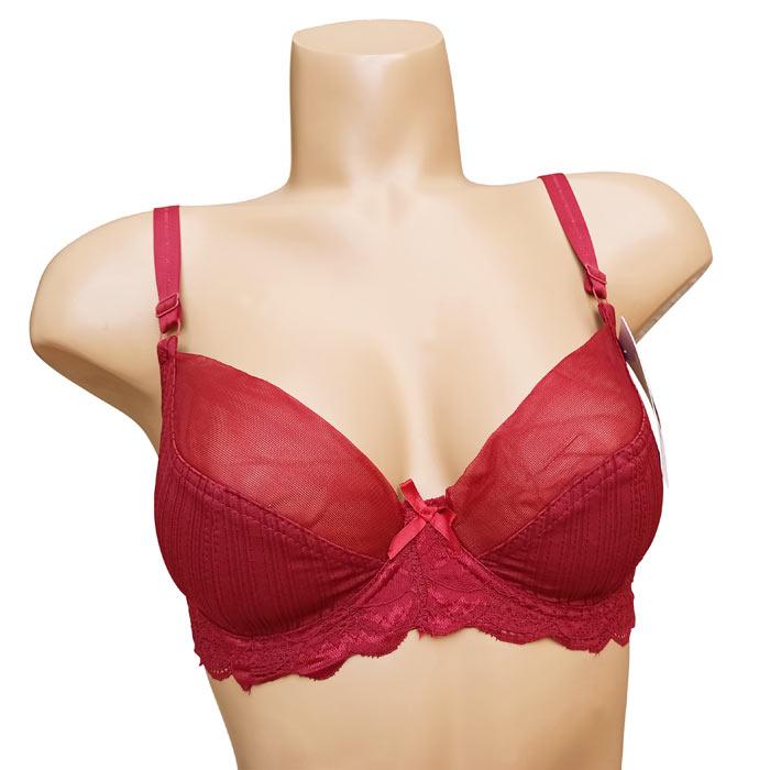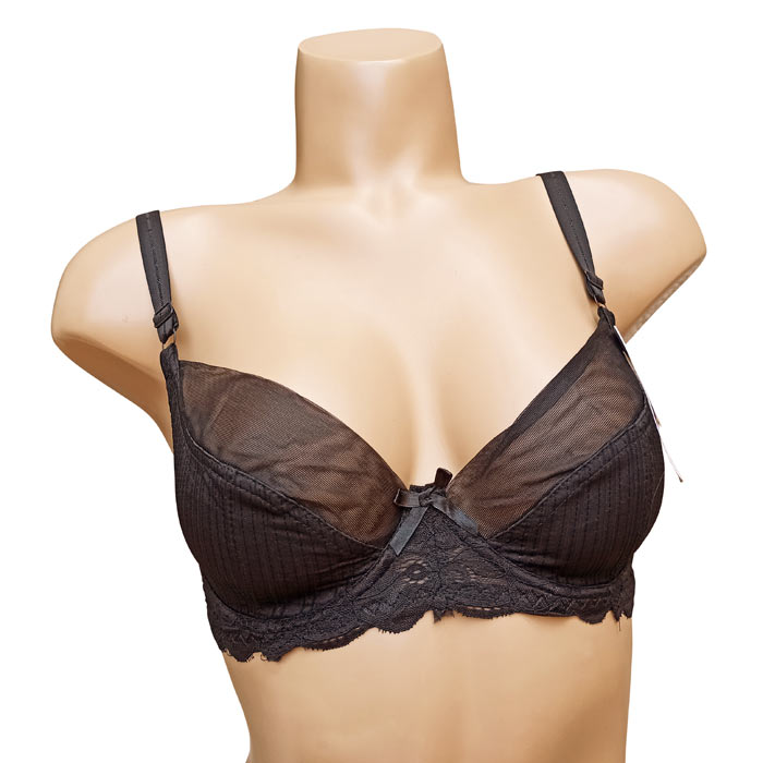 Soutien gorge grande taille, Bonnet C non rembourrés avec armatures. Tulle sur la partie supérieure du bonnet. Partie inférieure pleine. Dentelé sur la partie basse du bonnet à l'avant. Brides réglables, non amovibles. Fermeture dos 2 agrafes et 3 positions d'accroches. 6 tailles : de 85C à 110C.