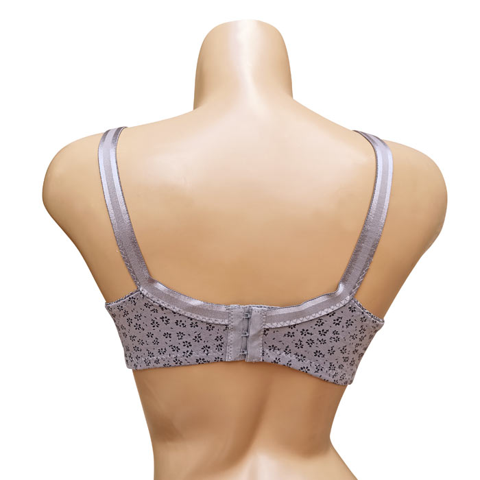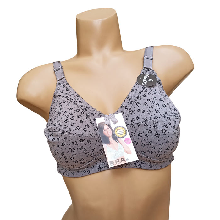 Soutien gorge grande taille, Bonnet D non rembourrés avec armatures. Soutien-gorge Coton majoritaire avec imprimé "fleurs". Brides réglables, non amovibles. Fermeture dos 3 agrafes et 3 positions d'accroches. 6 tailles : de 100D à 115D.