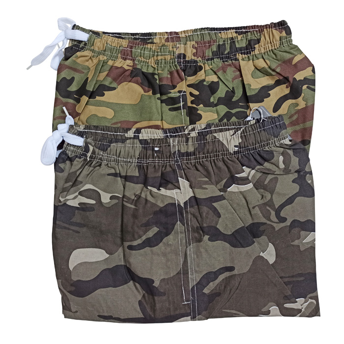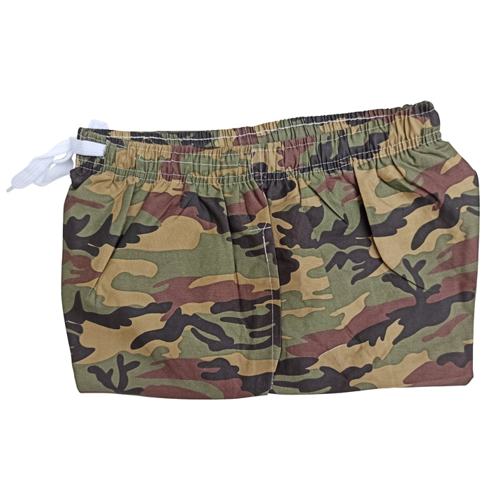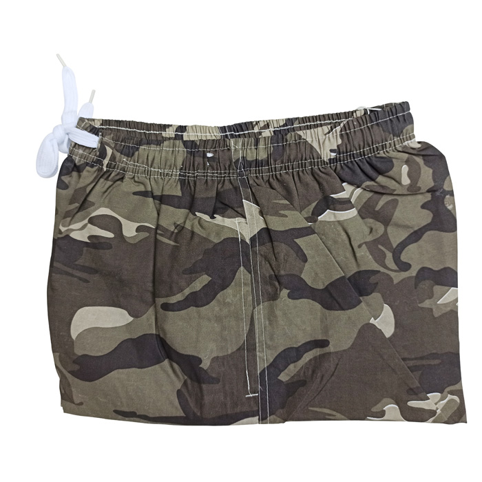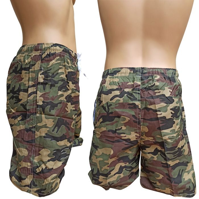 Bermuda de surf doublé d'un fin filet intérieur (en forme de slip)- 2 poches côtés. Ceinture taille élastiquée avec lacet de resserrage. Imprimé militaire type"camouflage" sur l'ensemble du bermuda. 5 tailles : M - L - XL - 2XL - 3XL.