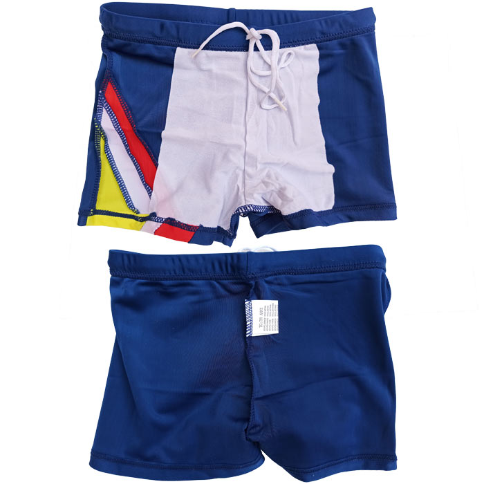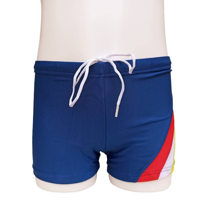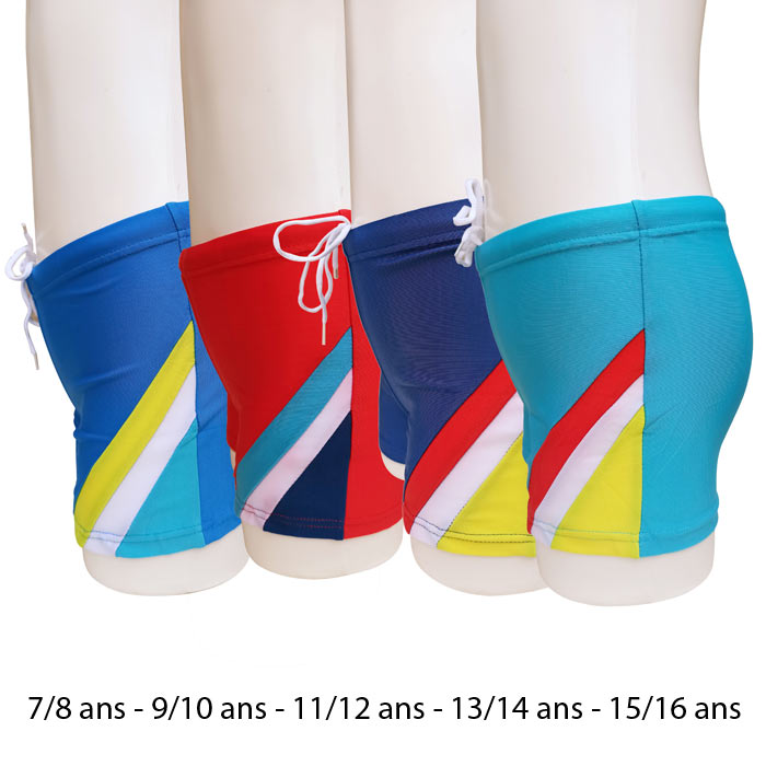 Boxer de bain garçon, doublé d'un fin filet intérieur à l'avant, taille élastiquée avec lacet de resserrage. Boxer de bain avec bandes contrastées sur un côté. 3 tailles : 7/8 ans - 9/10 ans - 11/12 ans