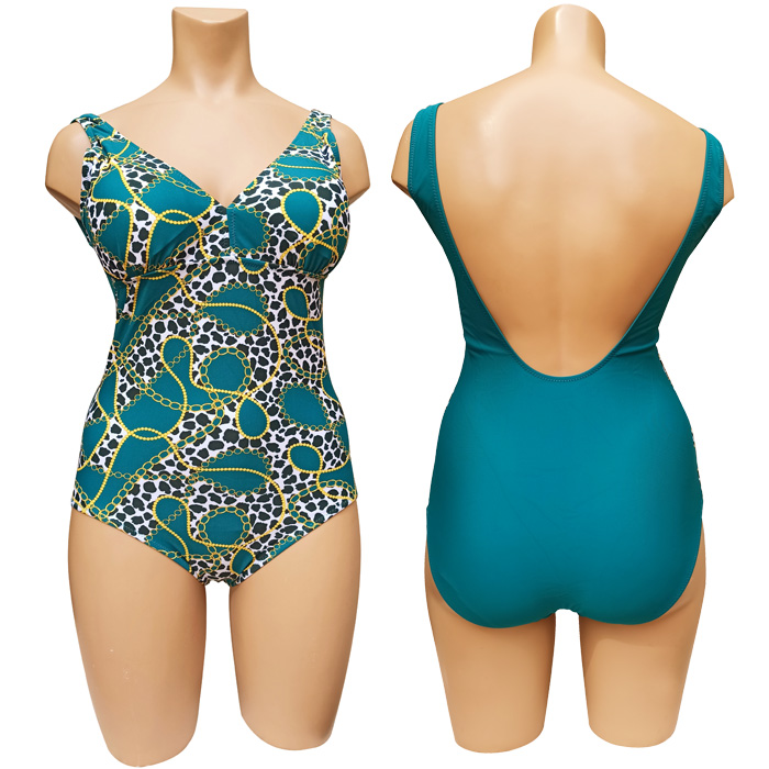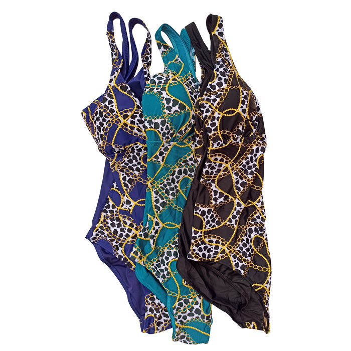 Maillot de bain femme 1 pièce, entièrement doublé . Soutien gorge forme triangle sans armatures, mousses amovibles. Maillot "imprimé paisley" sur le devant du maillot. Bretelles épaule. 3 couleurs et 4 tailles indiquées sur étiquette.