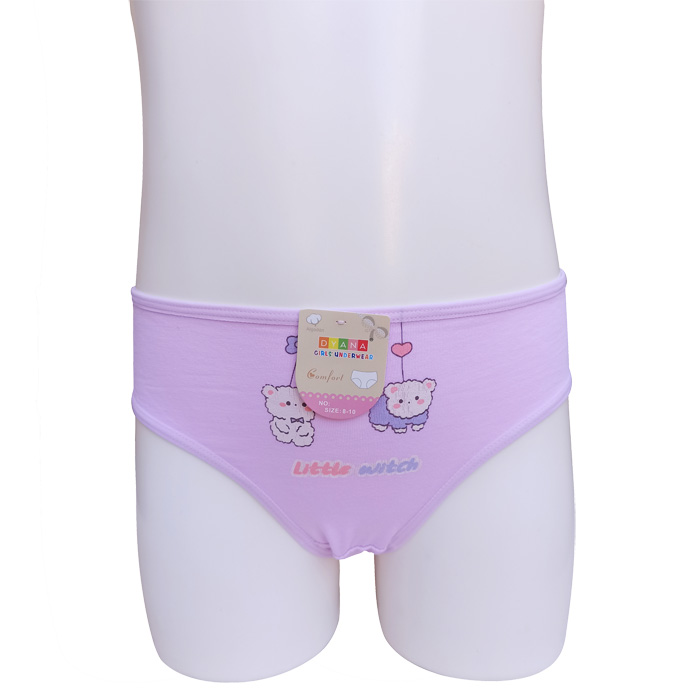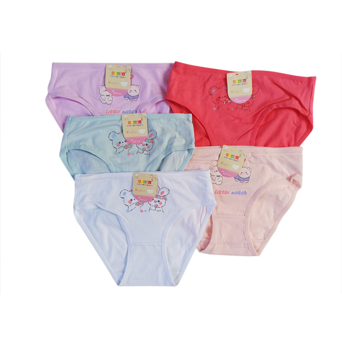 Slip fille confortable, coton majoritaire unie avec motif sur le devant. Culotte élastiquée à la taille. 6 coloris différents et 4 tailles : 2/4 ans 5/7 ans, 8/10 ans, 10/12 ans.