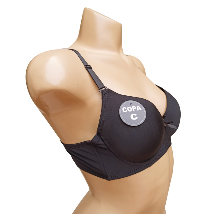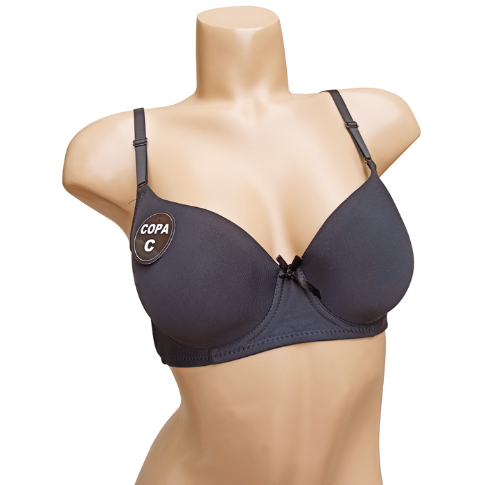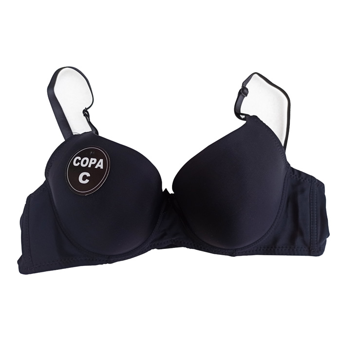 Soutien gorge uni, armatures, coques souples, bonnet C . Fermeture au dos par 3 agrafes, 3 positions possibles. Brides réglables et amovibles. 6 tailles.