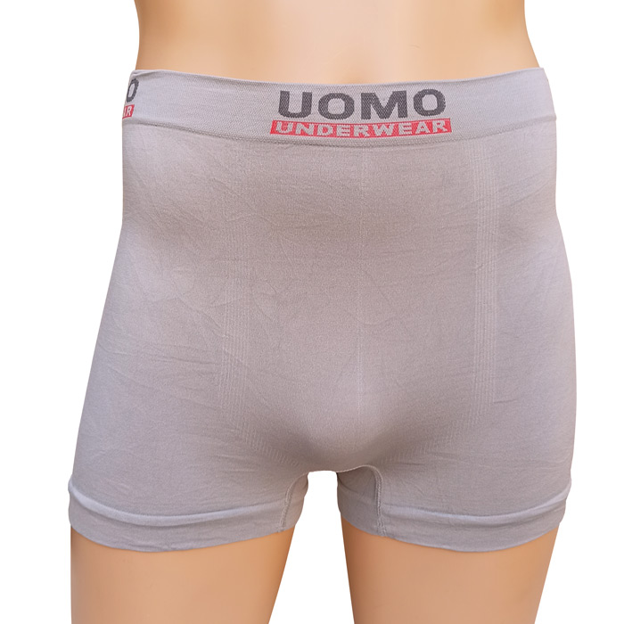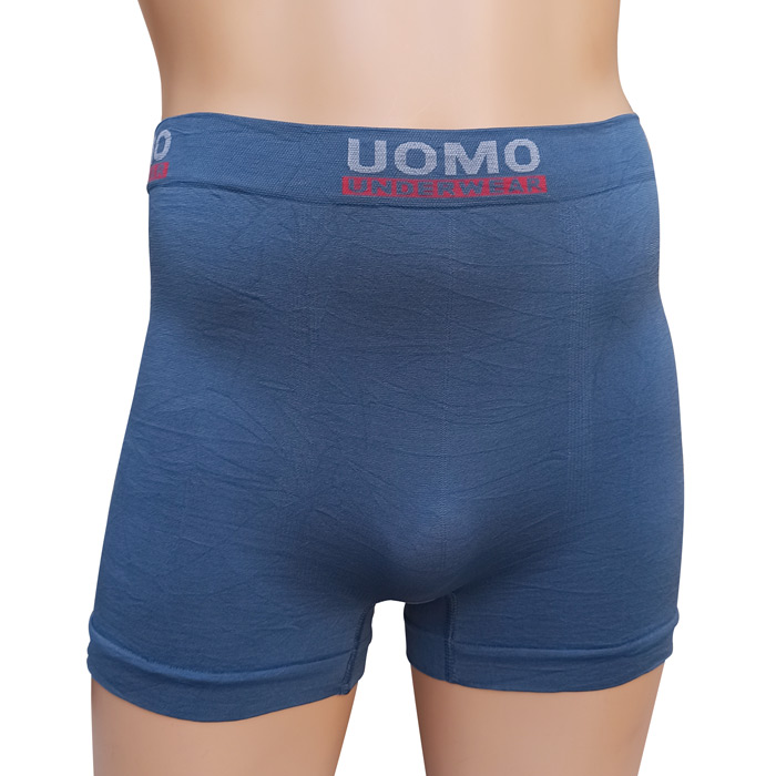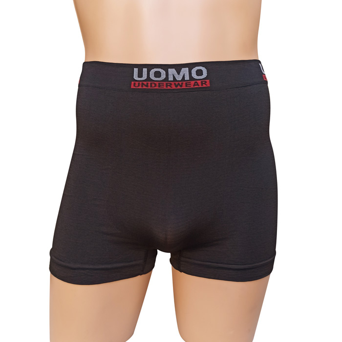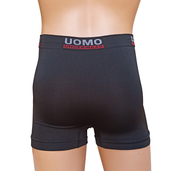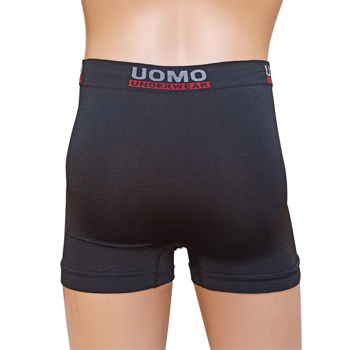 Boxer homme entièrement uni. Ceinture élastiquée avec inscription au niveau de la taille uniquement. Boxer très extensible. 2 tailles sont indiquées. : M/L et XL/2XL.