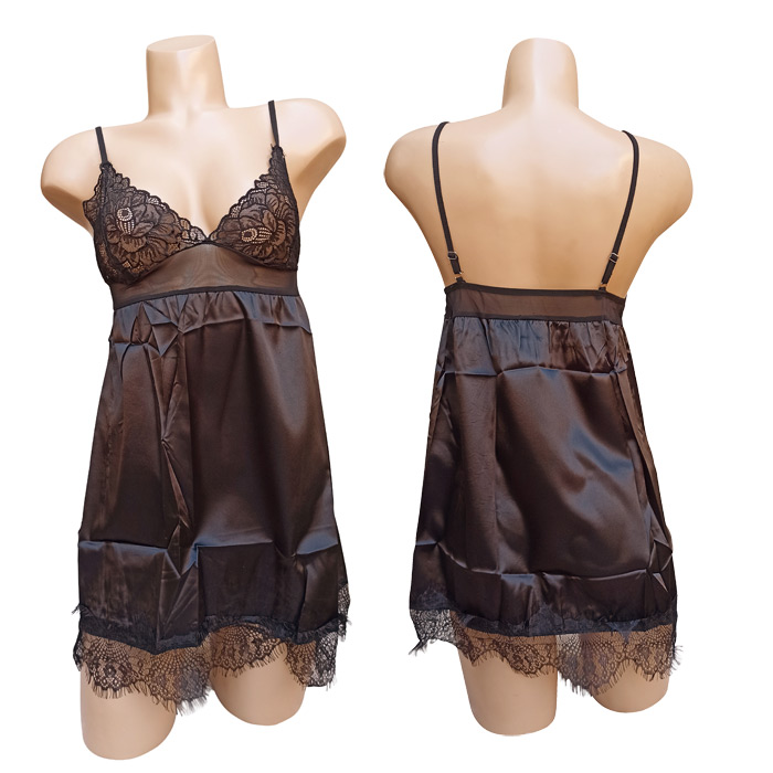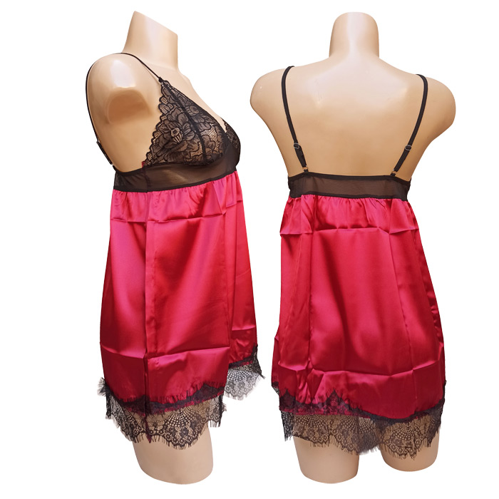 Nuisette satiné sexy avec un string ficelle satiné . Soutien-gorge bonnets forme triangle non rembourrés, dentelle broderie sur les bonnets. Dos fines bretelles réglables. Longueur nuisette au dessus du genou. Bas nuisette pourtour dentelle 2 tailles : M/L - XL/2XL.