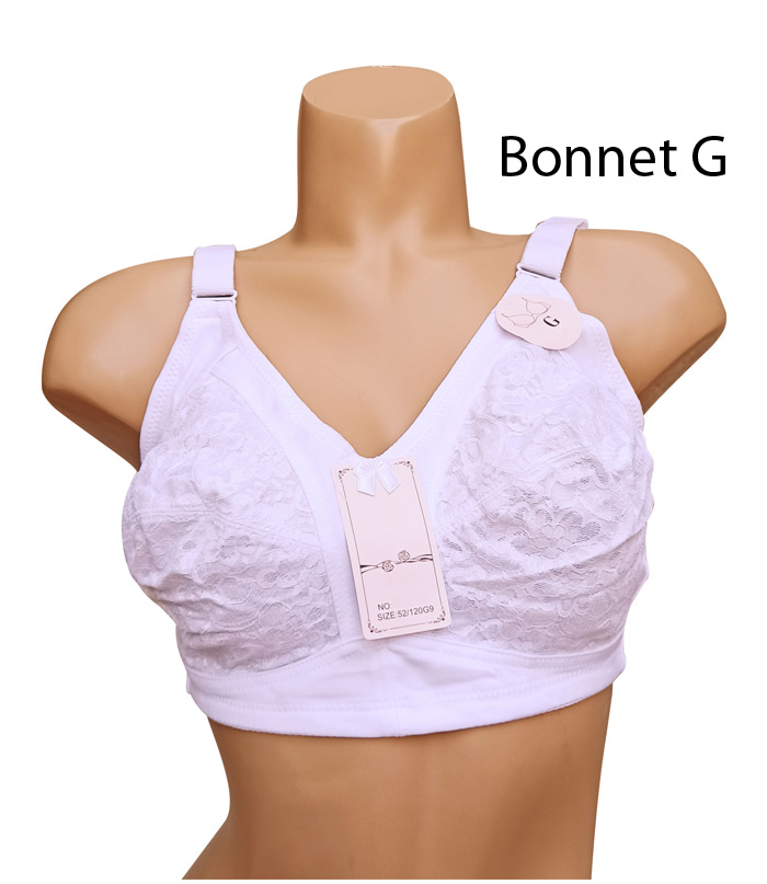 Soutien gorge grande taille,Bonnet G, . Soutien gorge sans armatures et non rembourré. Brides réglables. Ouverture dos, 4 agrafes triple positions d'accroches. 6 Tailles : de 120G a 145G