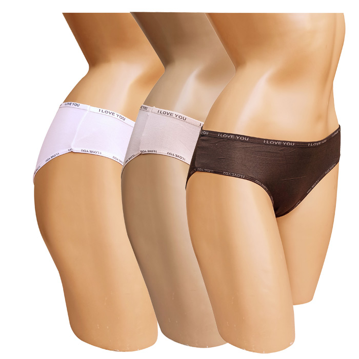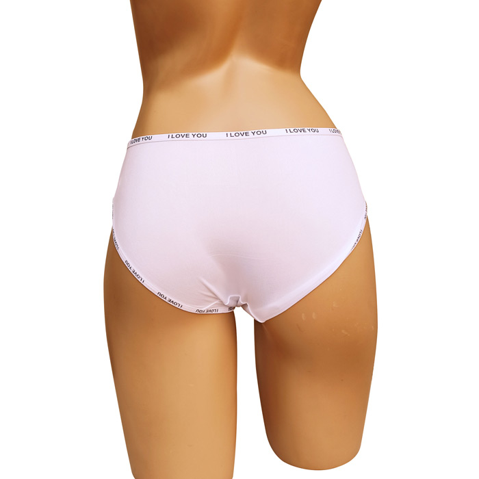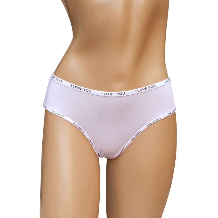 Slip femme, coton majoritaire. Entièrement uni. Taille élastiquée avec inscription "I LOVE YOU". Fond doublé. 2 Tailles.