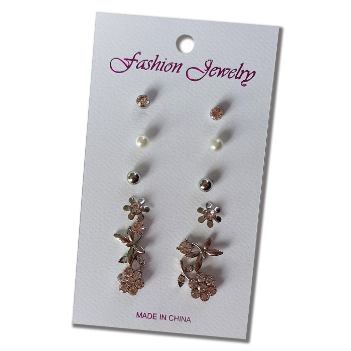 Lot de 6 paires de boucles d oreilles argentées avec strass, perle. Forme différents : fleur, feuilles, perle...