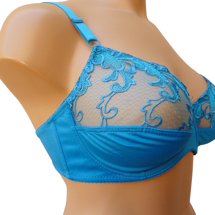 LOT DESTOCKAGE : Ensemble soutien gorge grande taille avec slip. Soutien gorge bonnet E, non rembourré avec baleines. Fleurs brodées sur maille filet stretch sur la partie supérieure du bonnet. Slip , 2 bandes de dentelle fleurie sur les côtés. Livré sur cintre. 6 tailles : 105E au 120E.