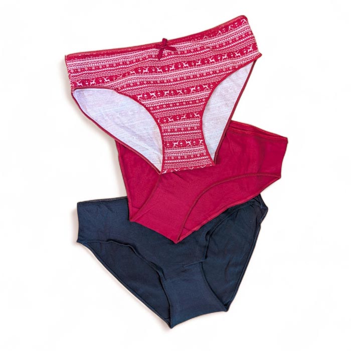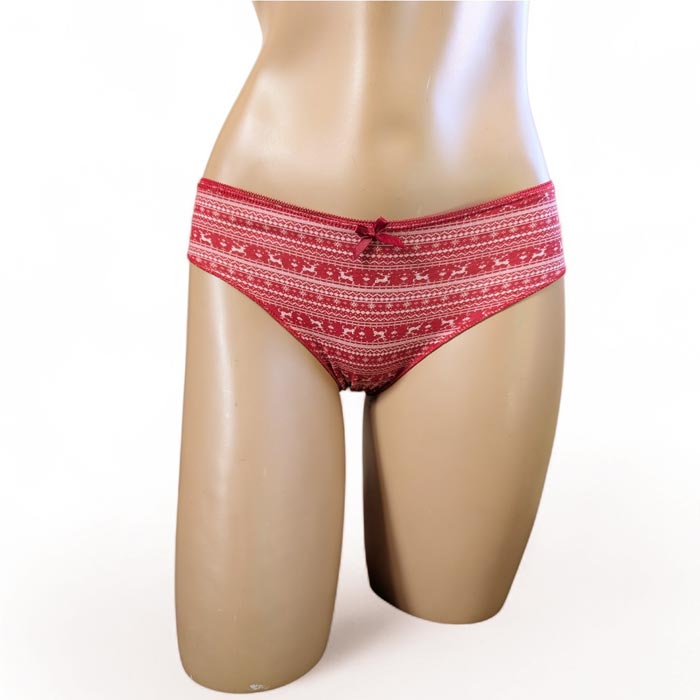 Slip femme, coton majoritaire. Fond uni OU motifs. Taille élastiquée. Fond doublé. 2 Tailles : S/M et L/XL