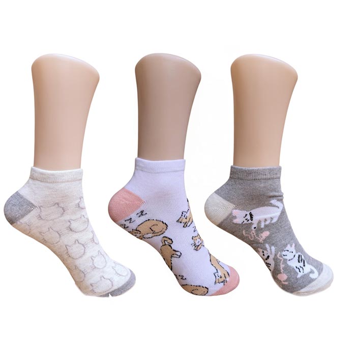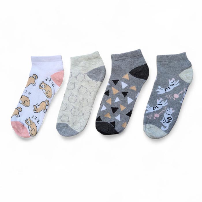 Socquette femme invisible, coton majoritaire. Motif différents "chats, forme géométriques etc..." Taille unique : 35-40.
