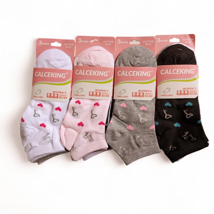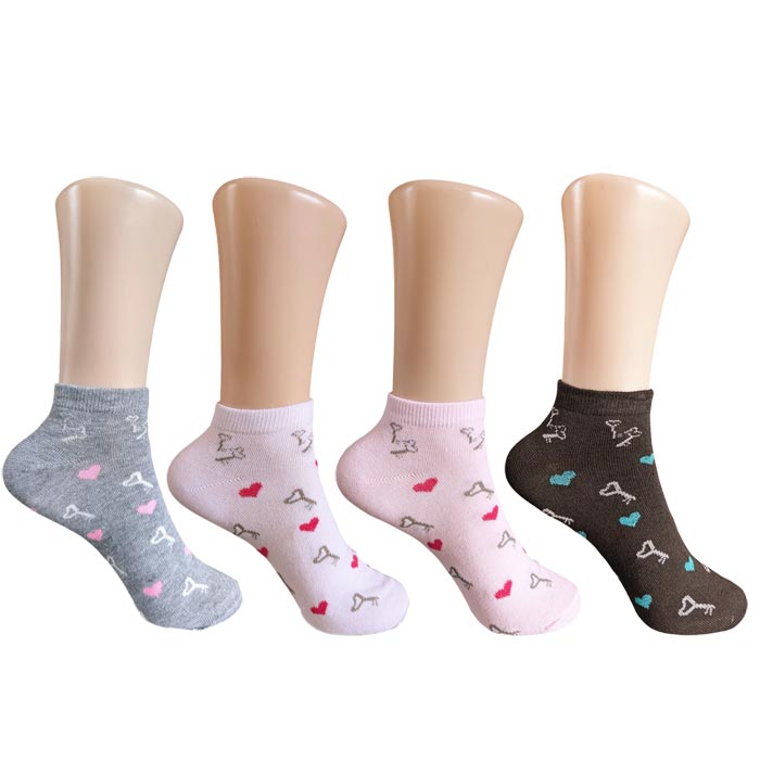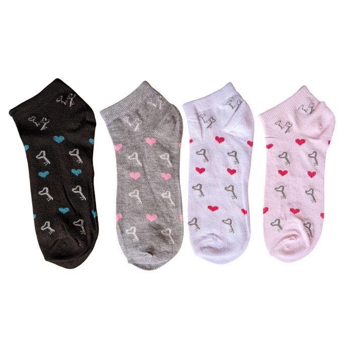 Socquette femme invisible, coton majoritaire. Motif différents "coeurs" Taille unique : 35-40.