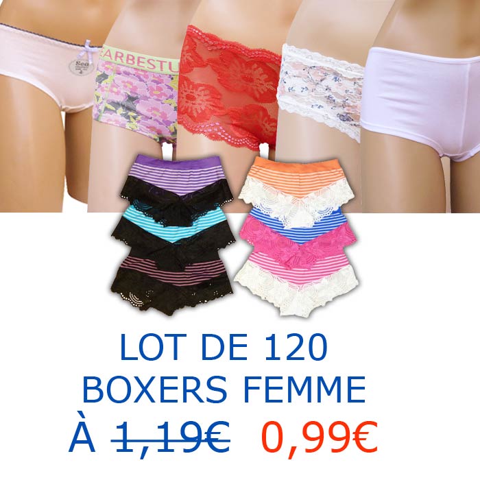Pack de 120 boxers femme- 5 modèles différents --parmi les modèles ,b342, b344, b349 ,b372, b377 , b374, ,b397, b382 ....suivant arrivage.