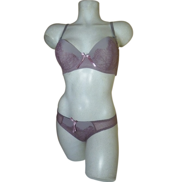 Ensemble soutien gorge slip rembourré, avec baleine. Dentelle, travaillée façon "brindilles", brodée sur maille résille stretch recouvre les bonnets uni en lycra. Brides amovibles- Slip uni à l'arrière, rappel de la dentelle à l'avant Attention : taille européenne, indiqué C sur étiquette correspond à un grand bonnet C. 5 taille : 90 C à 110 C - taille 100 en double