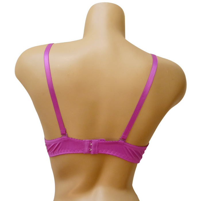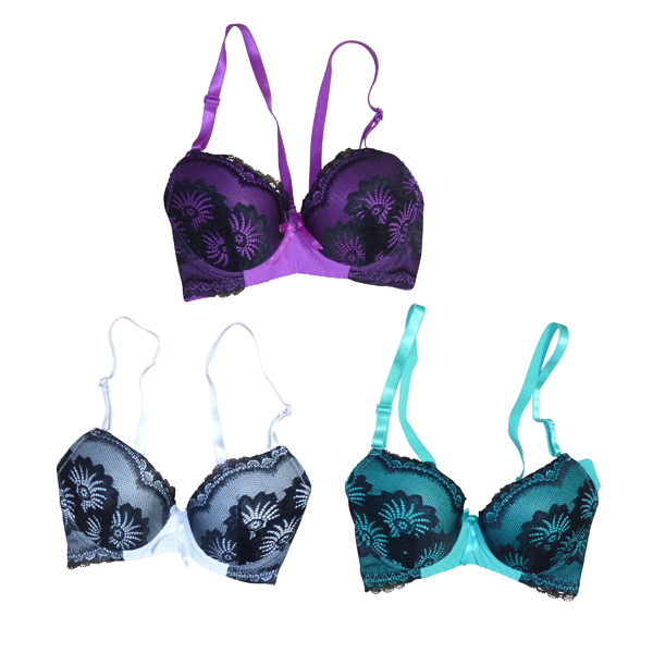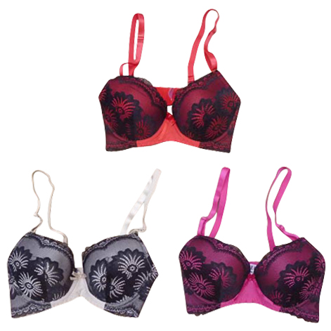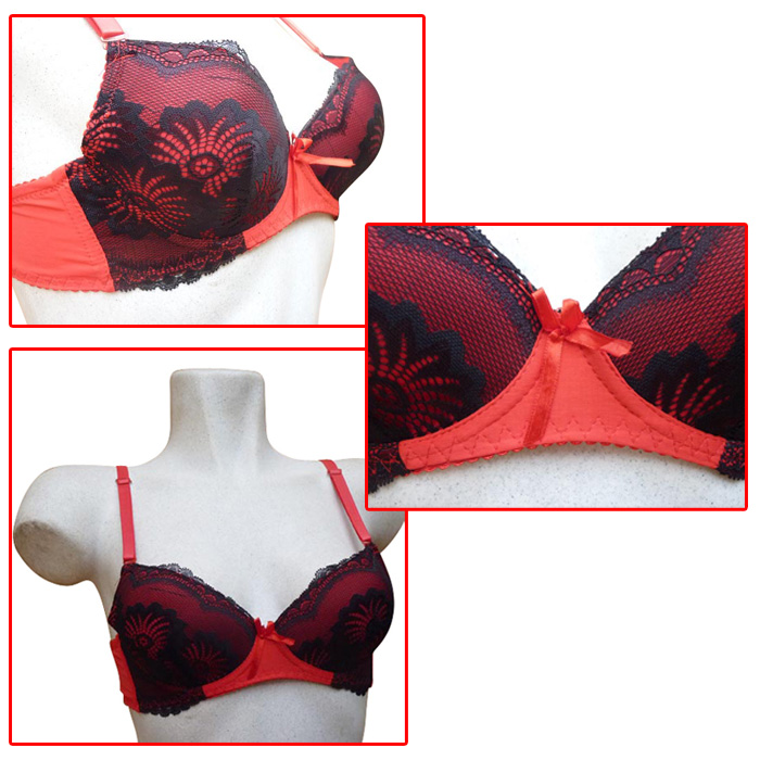 Soutien gorge rembourré avec baleines, forme balconnet - Bonnet recouvert d'une dentelle, motif fleurs brodées sur maille filet stretch - Nœud satin entre bonnet - Brides amovibles - Tailles européennes (70B - 95B) - 6 Tailles.