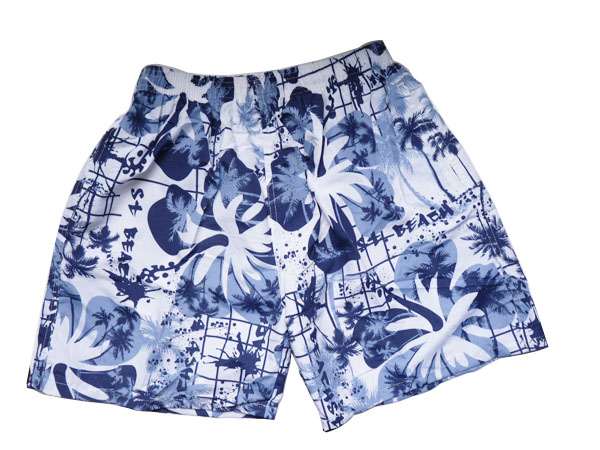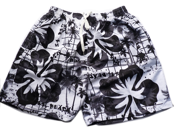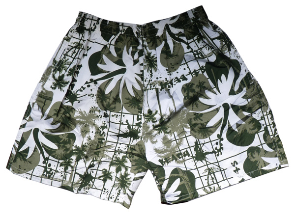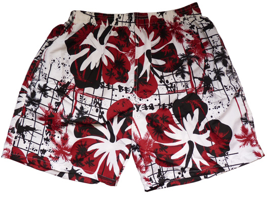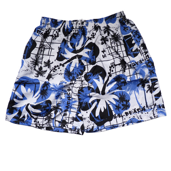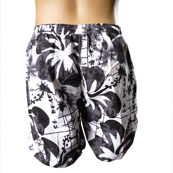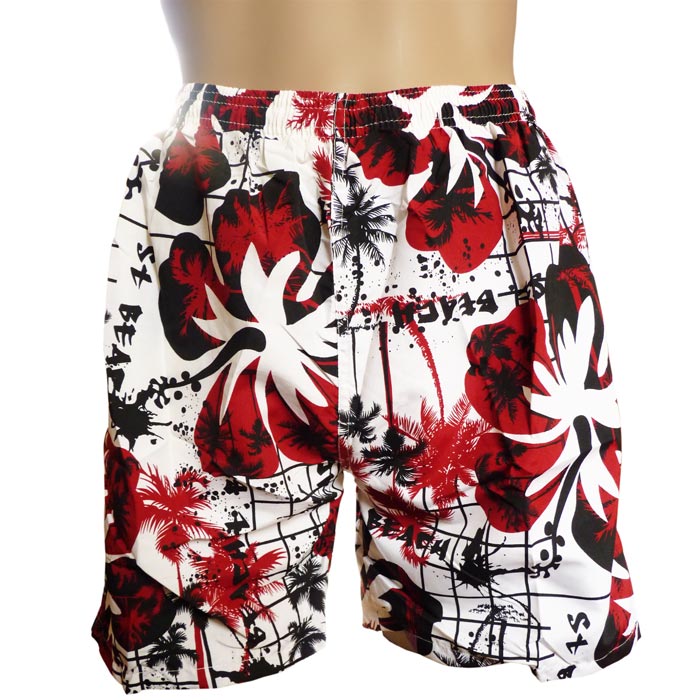Bermuda de surf homme, doublé d'un filet intérieur homme -taille élastiquée avec lacet de resserrage motifs hibiscus et décors des îles avec palmiers-2 poches côtés- 4 tailles : M-L-XL-2XL
