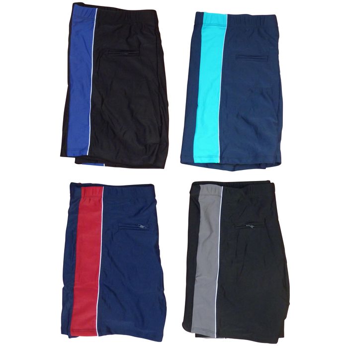 Boxer de bain homme grande taille , doublé d'un fin filet à l'avant. Lacet de resserrage à la taille. Large bande de couleur contrastée sur les côtés bordée d'un fin liseré blanc. 3 tailles (3XL,4XL,5XL) --- trois dernières pièces. 4xl, 5xl, 5xl---
