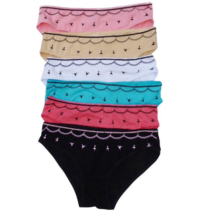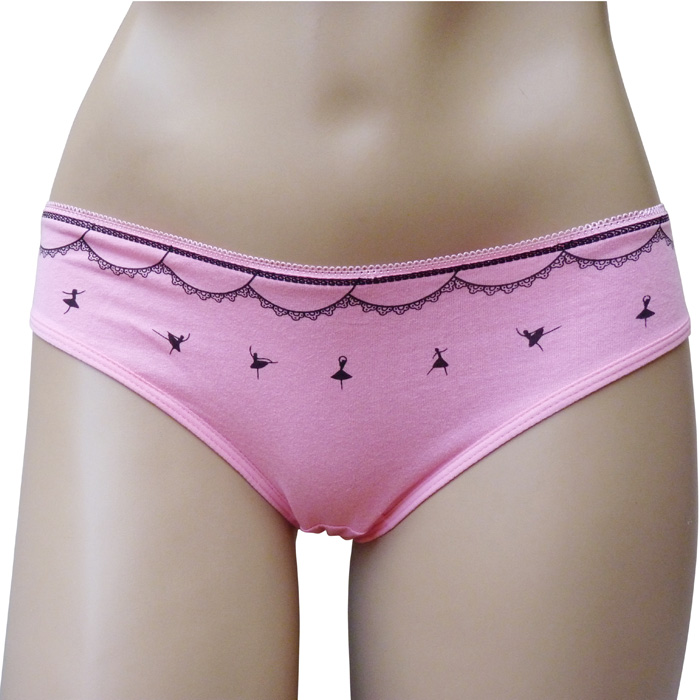 Slip femme, coton majoritaire, motif "guirlandes de danseuses" sur le devant, uni à l'arrière. 2 tailles.